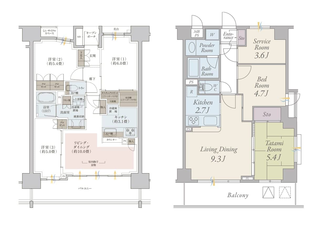 白黒・カラー問わず、シンプルなデザインの間取図から英字表記のお洒落な間取図まで、様々なデザインの間取図に対応可能です。