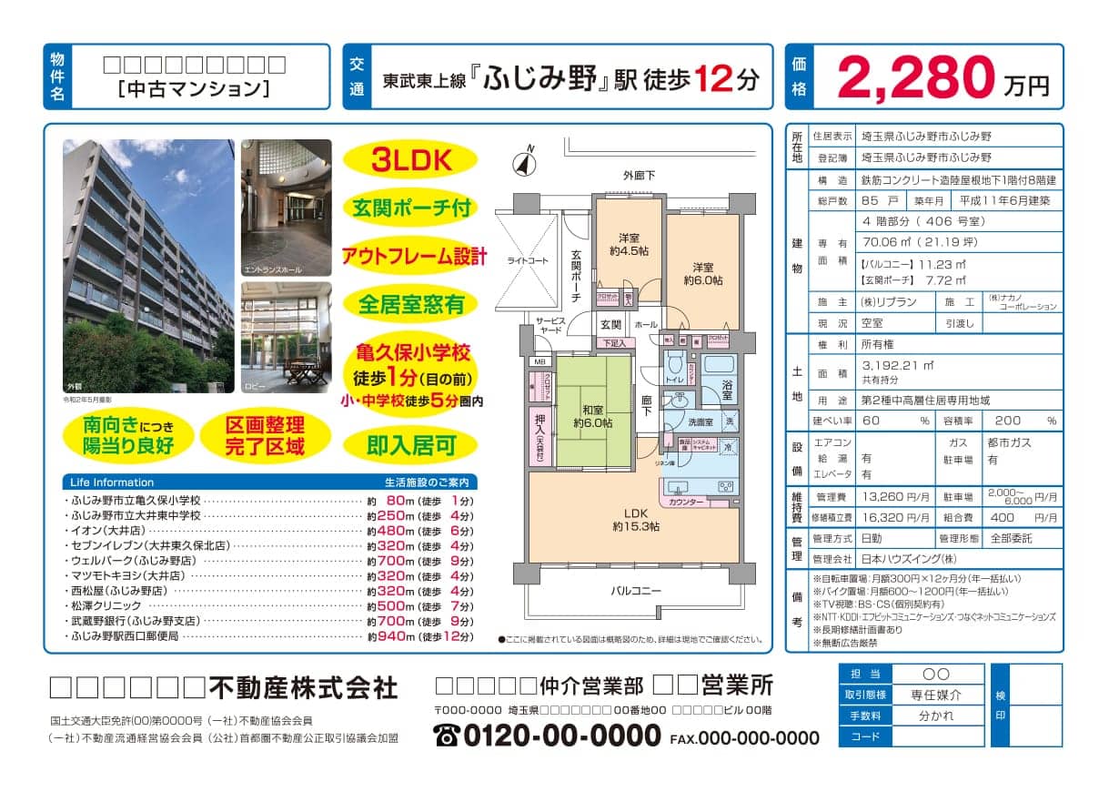A4物件情報シート制作費 / 11,000円〜