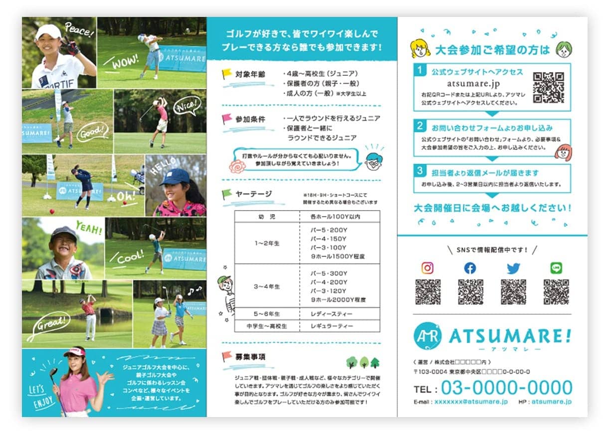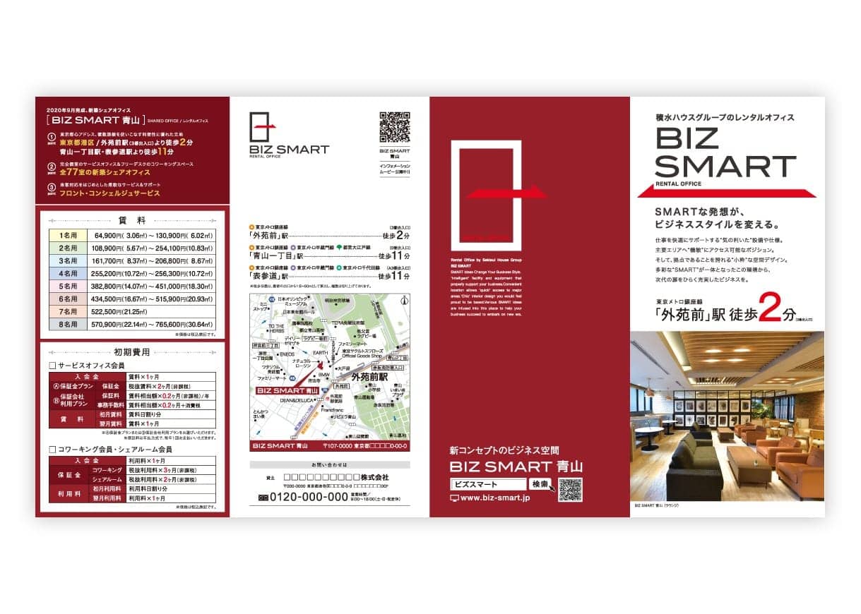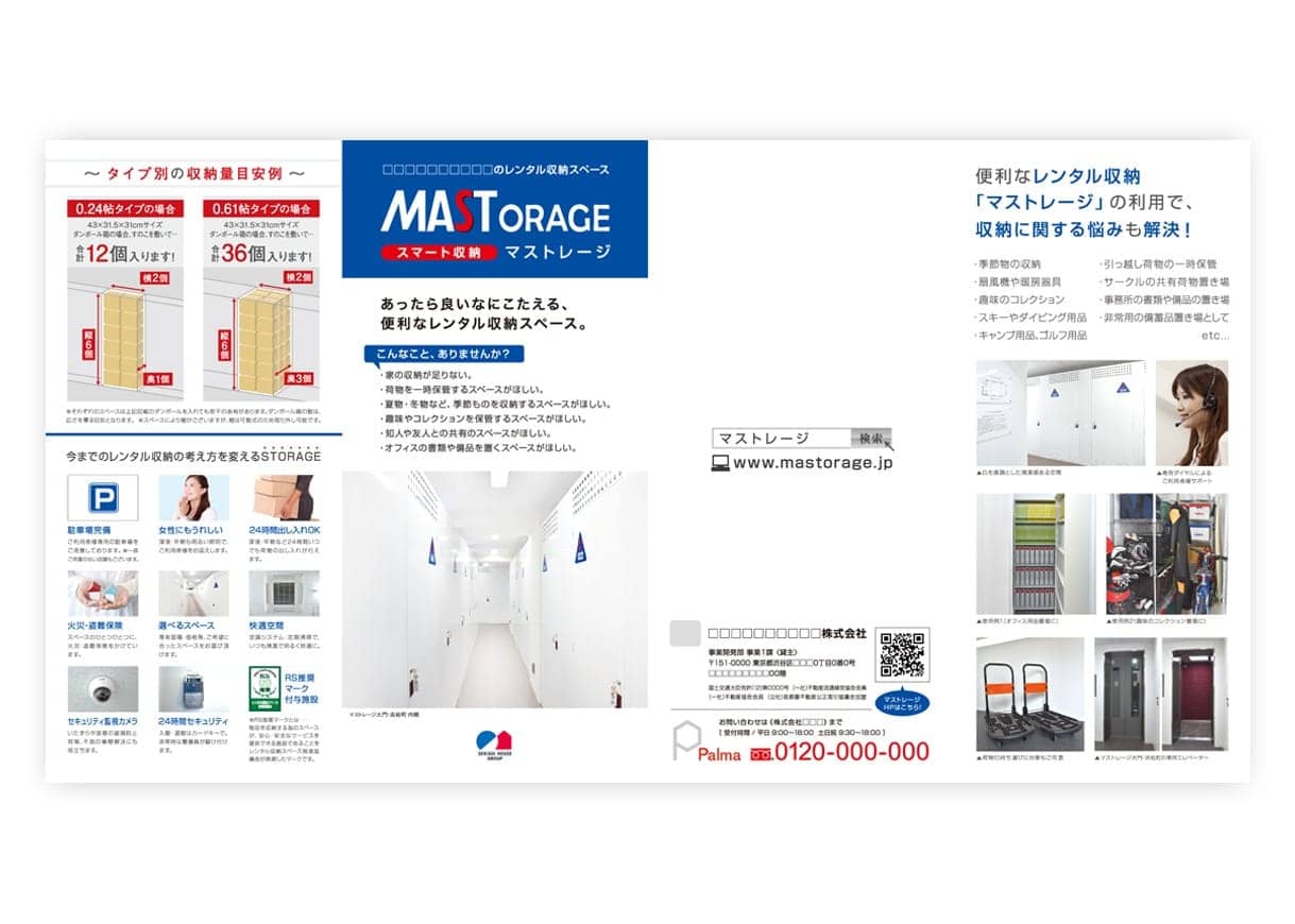 ポピュラーなのはA4サイズの三つ折り・観音折タイプです。その他、情報量や用途に合わせた最適なご提案をいたしますので、お気軽にご相談ください。